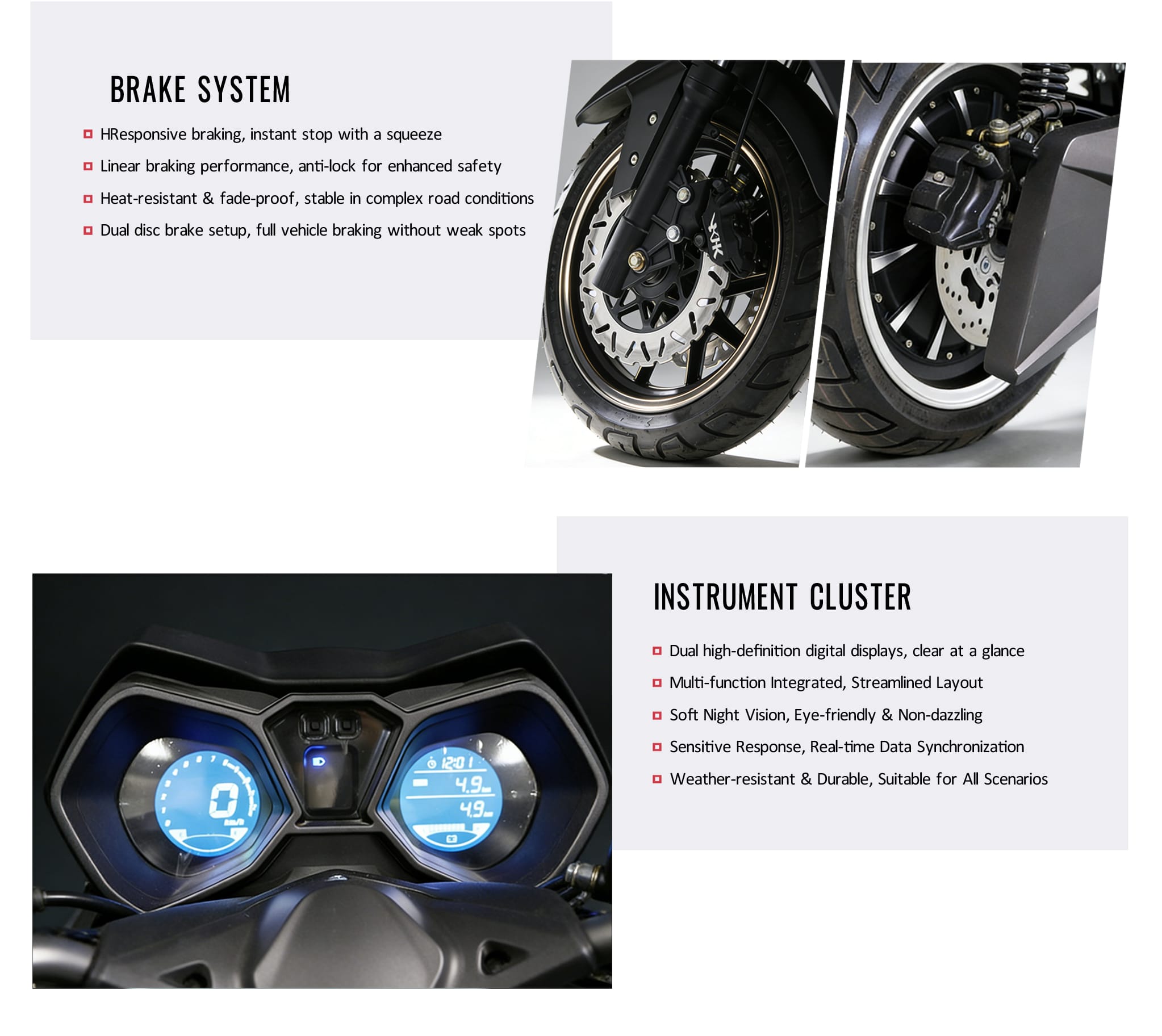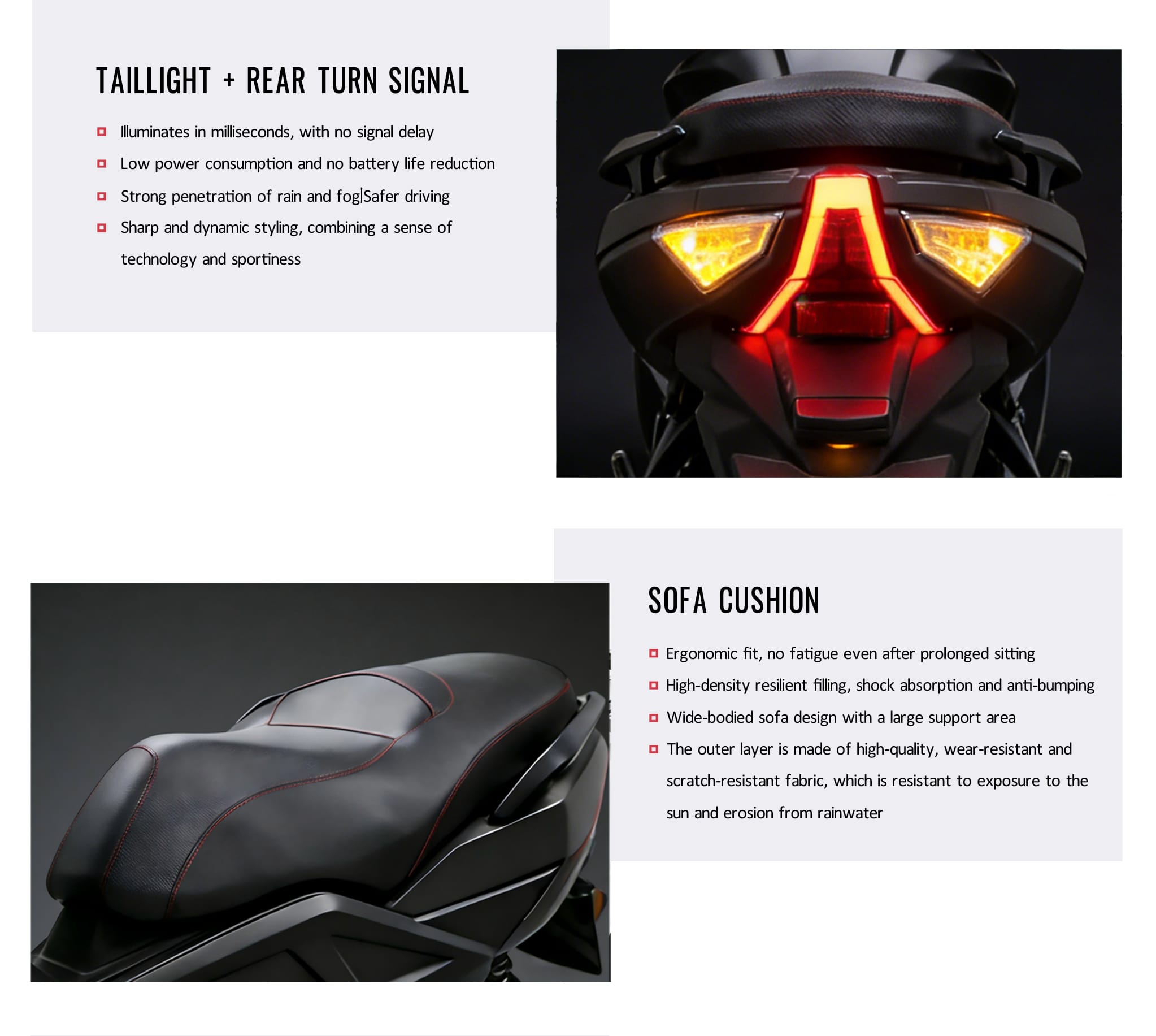 3000W Motor, 72V 45Ah Lithium Battery, 60-80KM/h, 70km driving range